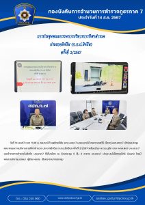 และข้าราชการตำรวจในสังกัด บก.อก.ภ.7 ที่เกี่ยวข้อง ณ ห้องประชุม 5 ชั้น 3 อาคาร บก.อก.ภ.7 ผ่านระบบอิเล็กทรอนิกส์ (Zoom) โดยมี