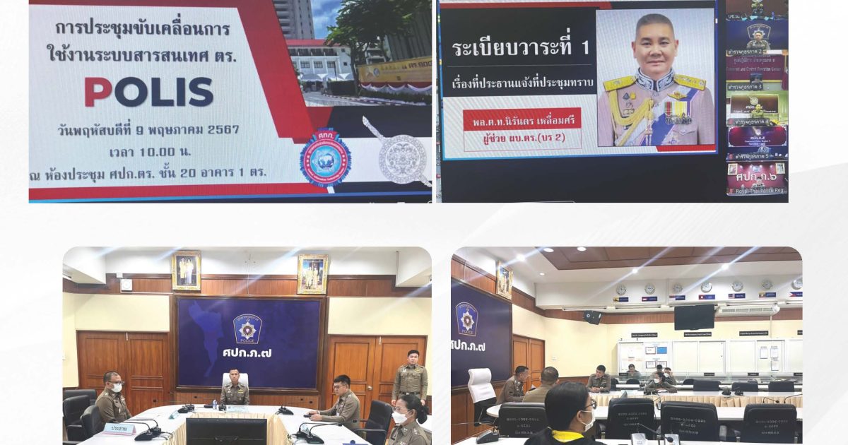 วันที่ 9 พ.ค.67 เวลา 10.00 น. พล.ต.ต.วันชัย ธารณธรรม รอง ผบช.ภ.7 มอบหมายให้ พล.ต.ต.พศวีร์ เรืองภู่ ผบก.อก.ภ.7 เข้าร่วมประชุมขับเคลื่อนการใช้งานระบบสารสนเทศ ตร. POLIS โดยมี พ.ต.อ.นุชิต จาละ ผกก.ฝอ.1 บก.อก.ภ.7 พ.ต.อ.หญิง สายพิณ รอดหงษ์ทอง ผกก.ฝอ.4 บก.อก.ภ.7 และข้าราชการตำรวจผู้ที่เกี่ยวข้องเข้าร่วมประชุม ณ ห้องประชุม ศปก.ภ.7 ชั้น 4 ผ่านระบบอิเล็กทรอนิกส์ ( ZOOM ) โดยมี พล.ต.ท.นิรันดร เหลื่อมศรี ผู้ช่วย ผบ.ตร. เป็นประธานการประชุม โดยทาง ศทก.ตร. ได้พัฒนาระบบให้ อต. สามารถบันทึกข้อมูลเลขตำแหน่งเข้าสู่ระบบ POLIS และพัฒนา Web Service เพื่อให้บริการเชื่อมโยงข้อมูลกับ แอปพลิเคชันแทนใจ หรือหน่วยงานอื่นๆ เสร็จเรียบร้อย