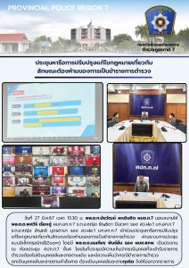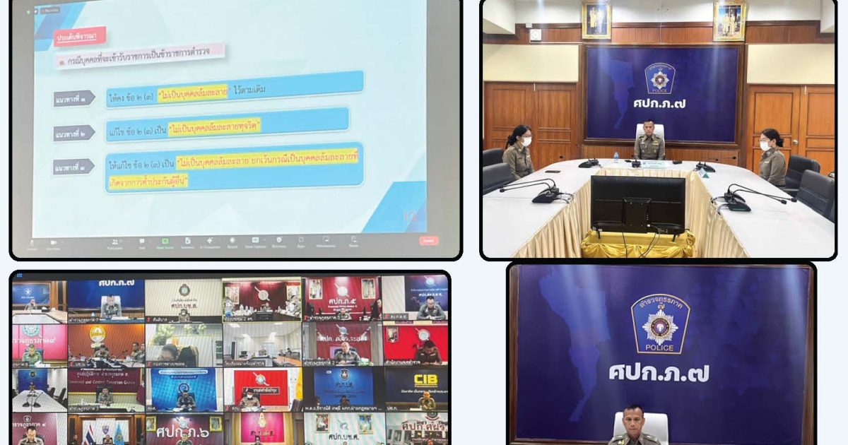 วันที่ 27 มี.ค.67 เวลา 13.30 น. พล.ต.ท.นัยวัฒน์ ผะเดิมชิต ผบช.ภ.7 มอบหมายให้ พล.ต.ต.พศร์ เรืองภู่ ผบก.อก.ก7 ร.ต.อ.หญิง ธัญธิดา ปั่นเวหา รอง สว.ฝอ.1 บก.อก.ภ.7 ร.ต.อ.หญิง อัญชลี บุตรดามา รอง สว.ฝอ 1 บก.อก.ก.7 เข้าร่วมประชุมหารือการปรุงแก้ไขกฎหมายเกี่ยวกับลักษณะต้องห้ามของการเป็นข้าราชการตำรวจ ผ่านระบบการประชุมแบบอิเล็กทรอนิกส์(Zoom) โดยมี พล.ต.ต.มนเทียร พันธ์อิ่ม รอง ผบช.สกพ. เป็นประธาน ณ ห้องประชุม ศปก.ภ.7 ชั้น4 โดยในที่ประชุมมีความเห็นว่ากรณีบุคคลที่จะเข้ารับราชการตำรวจต้องไม่เป็นบุคคลล้มละลายตามเดิม และมีความเห็นว่ากรณีข้าราชการตำรวจตกเป็นบุคคลล้มละลายตามคำสั่งศาล ต้องเป็นบุคคลลัมละลายทุจริต จึงให้ออกจากราชการ