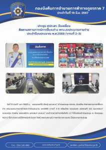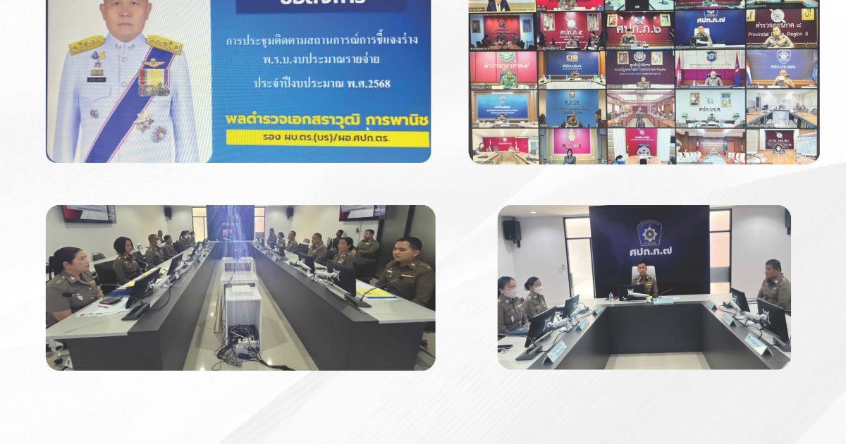 ศปก.ภ.7 ชั้น 1 ผ่านระบบอิเล็กทรอนิกส์ (Zoom) โดยมี พล.ต.อ.สราวุฒิ การพานิช รอง ผบ.ตร. เป็นประธานการประชุม