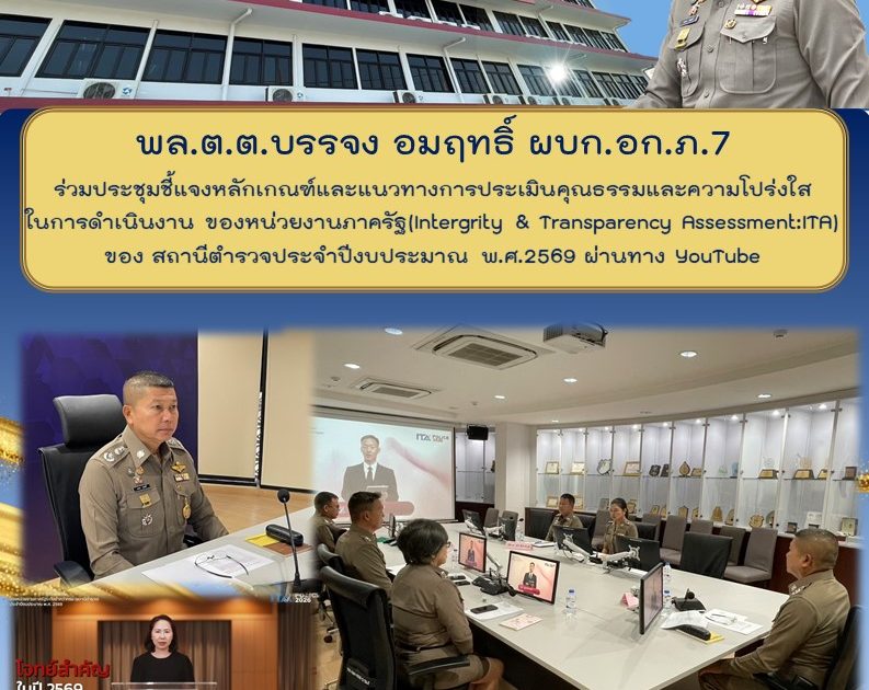 ผบก.อก.ภ.7 ร่วมประชุมชี้แจงหลักเกณฑ์และแนวทางการประเมินคุณธรรมและความโปร่งใสในการดำเนินงานของหน่วยงานภาครัฐ (Intergrity & Transparency Assessment : ITA) ของสถานีตำรวจประจำปีงบประมาณ พ.ศ. 2569 ผ่านทาง Youtube