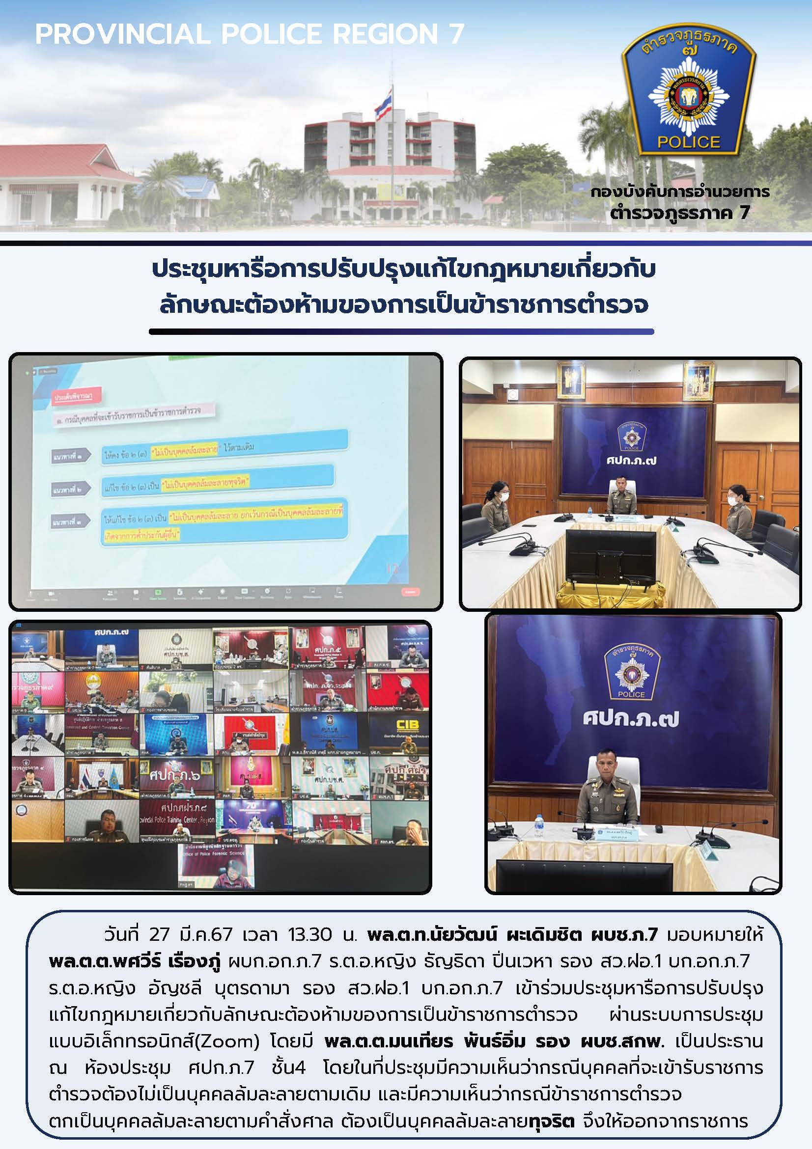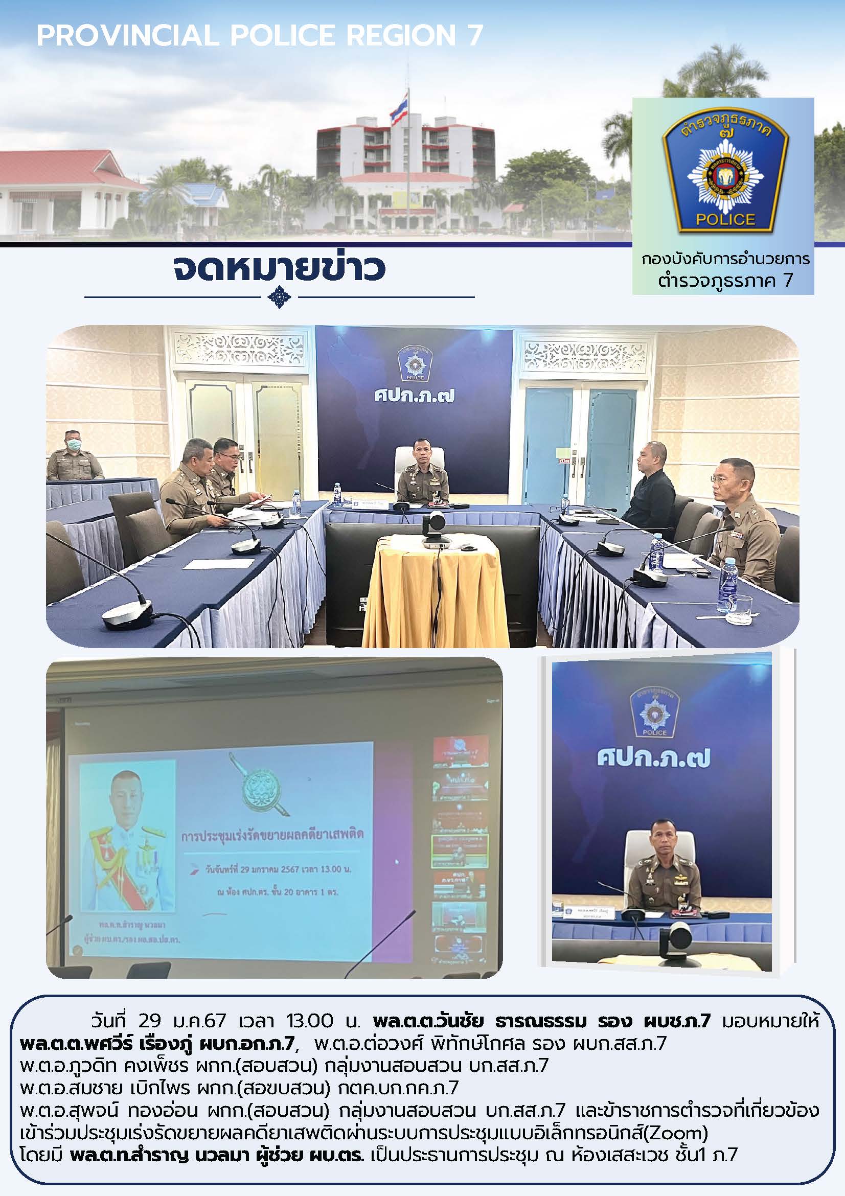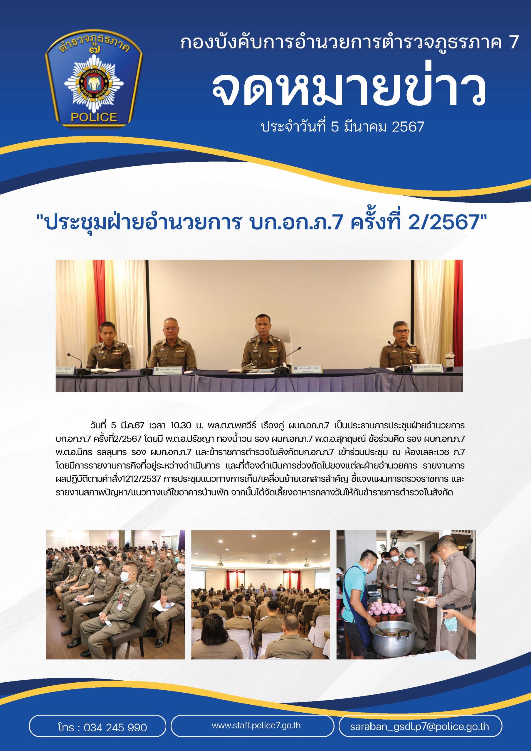 ประชุมฝ่ายอำนวยการ บก.อก.ภ.7 ครั้งที่ 2/2567 วันที่ 5 มี.ค.67 เวลา 10.30 น. พล.ต.ต.พศวีร์ เรืองภู