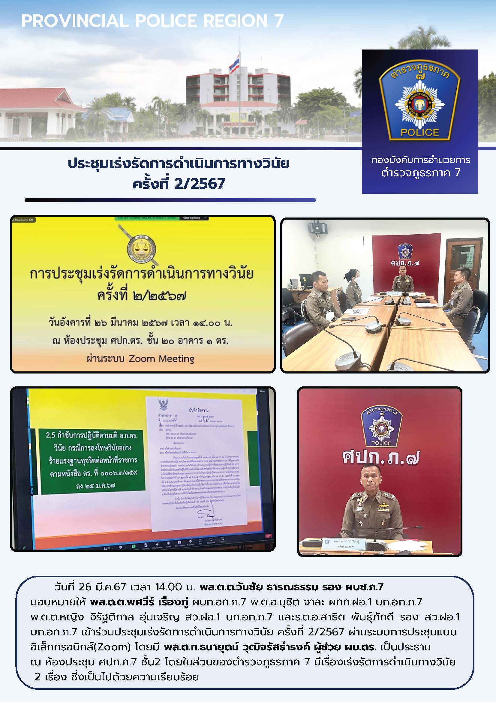 ประชุมเร่งรัดการดำเนินการทางวินัย ครั้งที่ 2/2567 วันที่ 26 มี.ค.67 เวลา 14.00 น. พล.ต.ต.วันชัย ธ