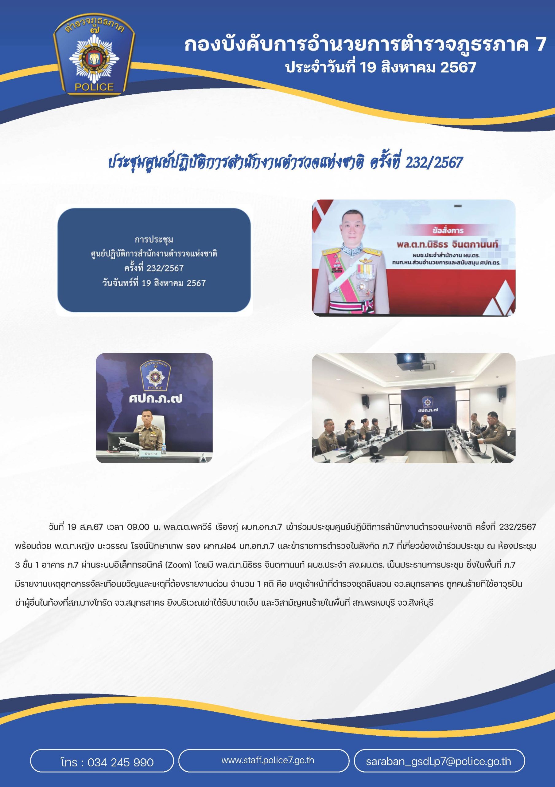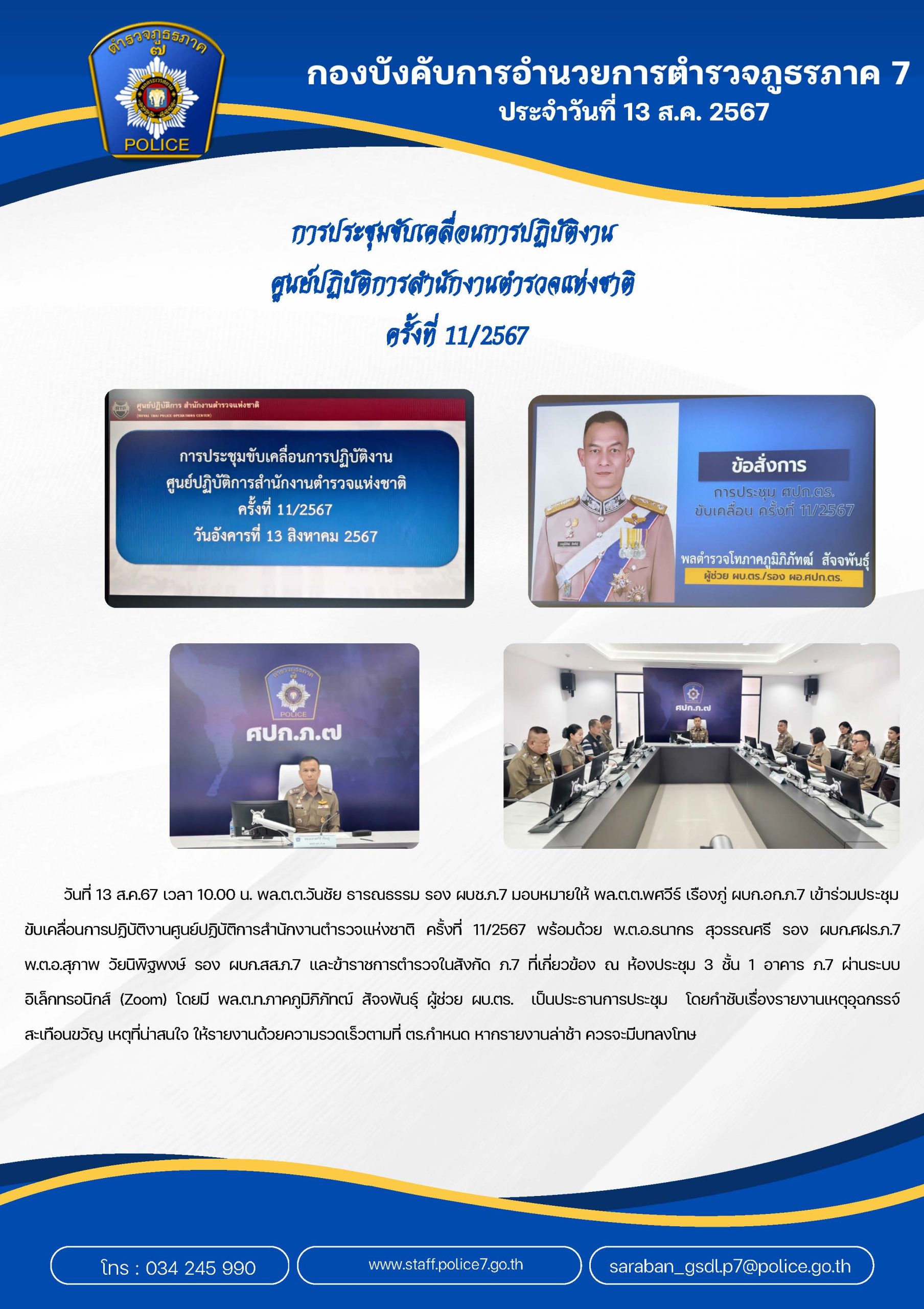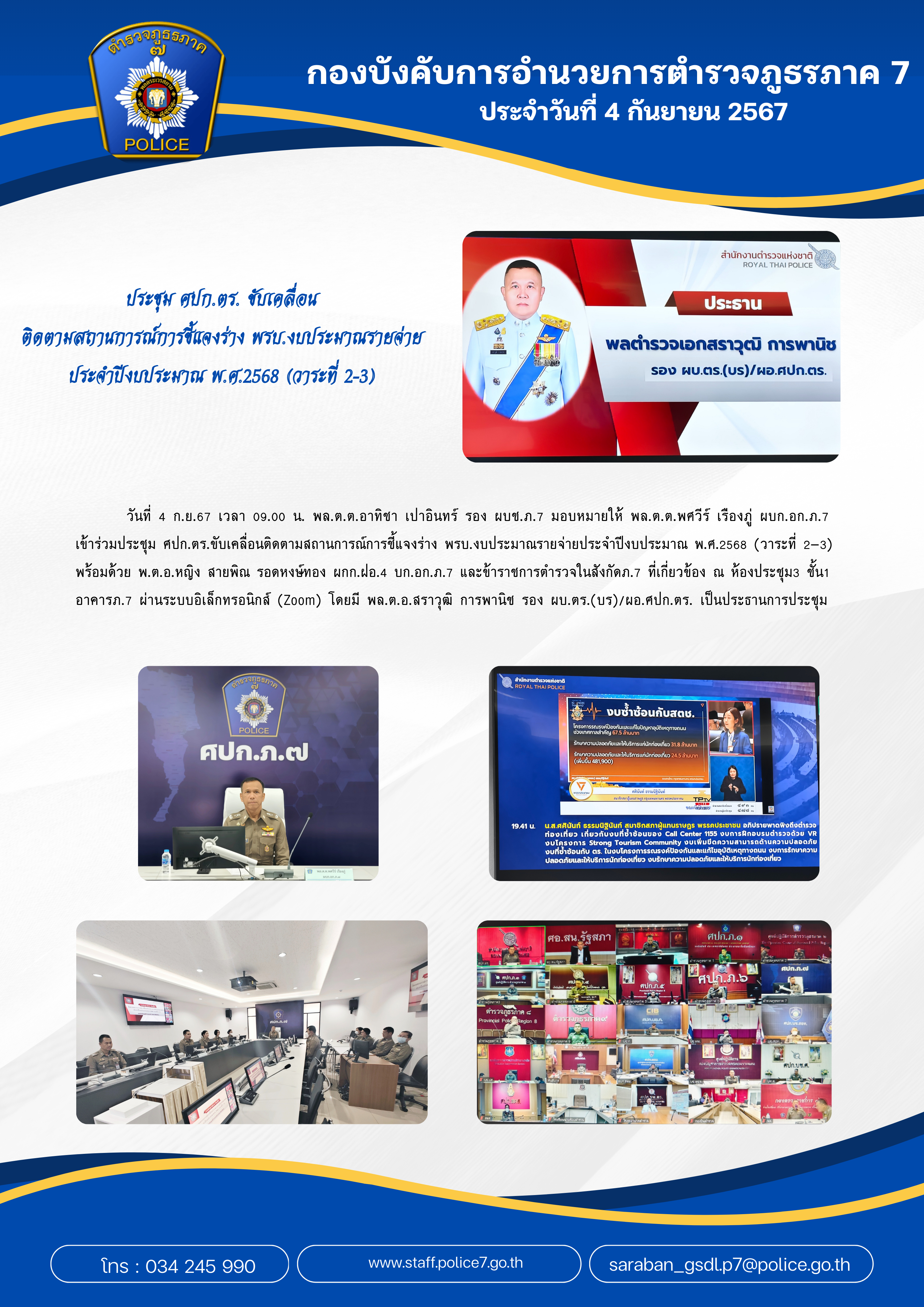 วันที่ 10 ตุลาคม 2567 เวลา 08.30 น. พล.ต.ท.นัยวัฒน์ ผะเดิมชิต ผบช.ภ.7 เป็นประธานในพิธีการจัดกิจกรรมน