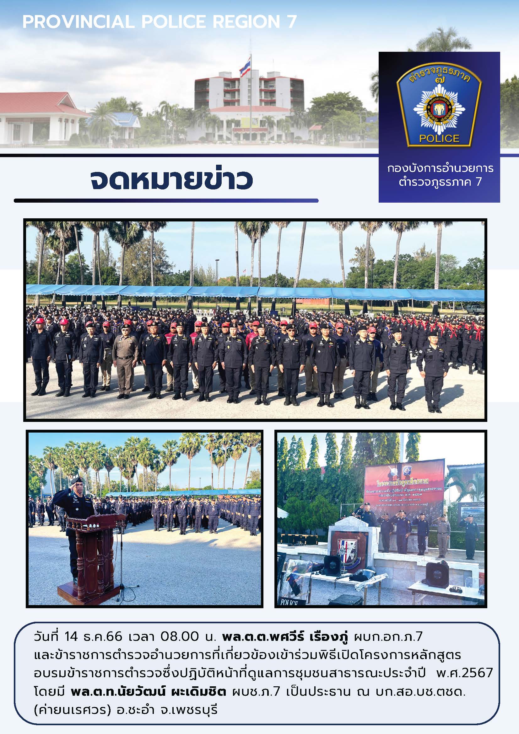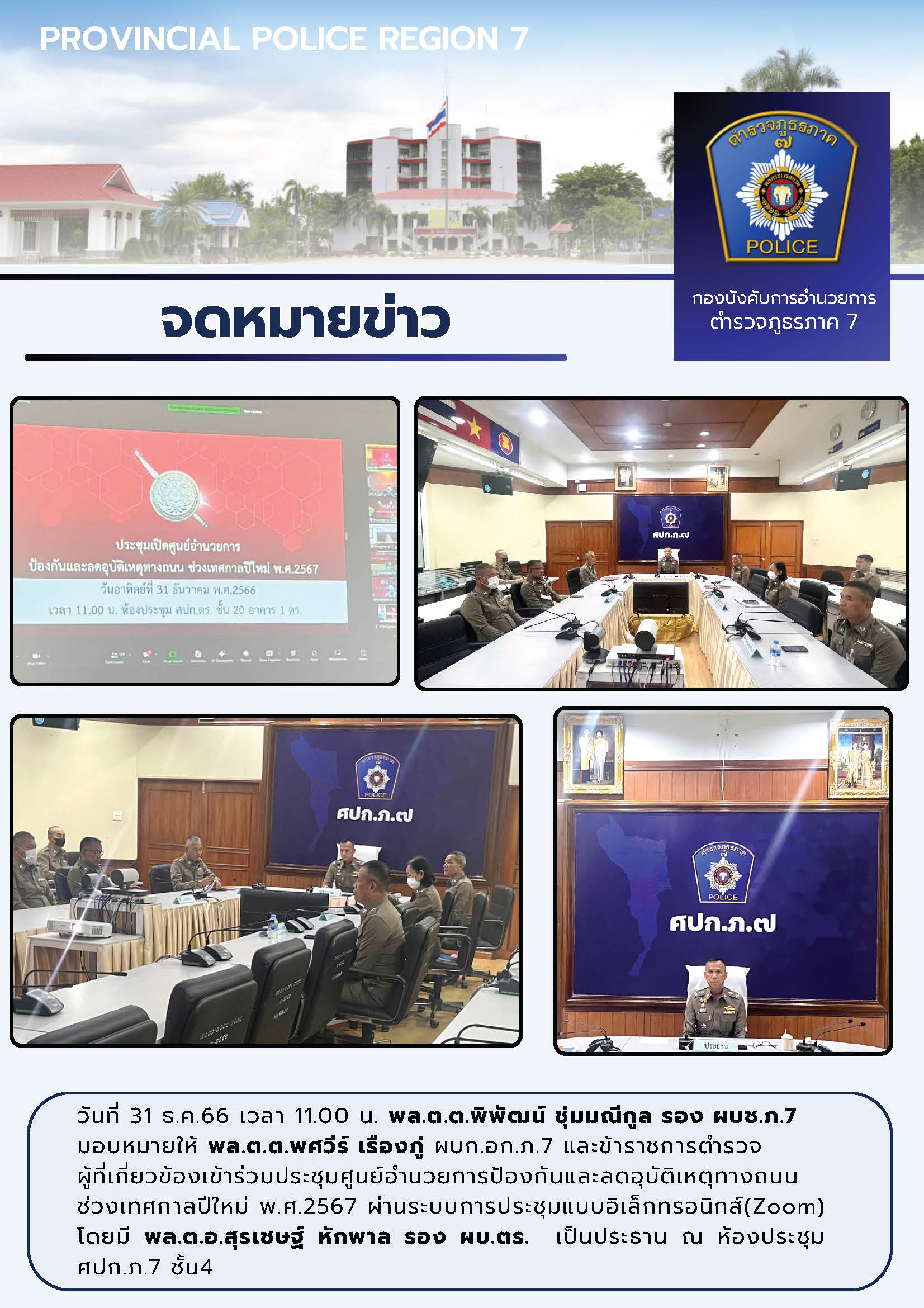 วันที่ 31 ธ.ค.66 เวลา 11.00 น. พล.ต.ต.พิพัฒน์ ชุ่มมณีกูล รอง ผบช.ภ.7 มอบหมายให้ พล.ต.ต.พศวีร์ เรื