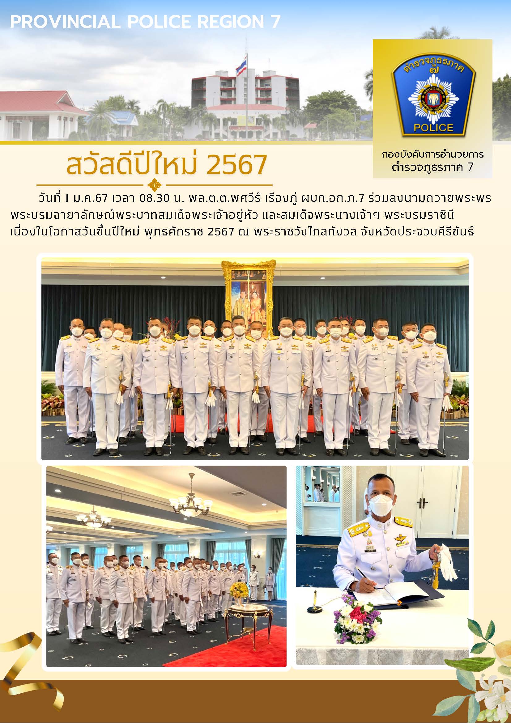 วันที่ 1 ม.ค.67 เวลา 08.30 น. พล.ต.ต.พศวีร์ เรืองภู่ ผบก.อก.ภ.7 ร่วมลงนามถวายพระพร พระบรมฉายาลักษณ์พ