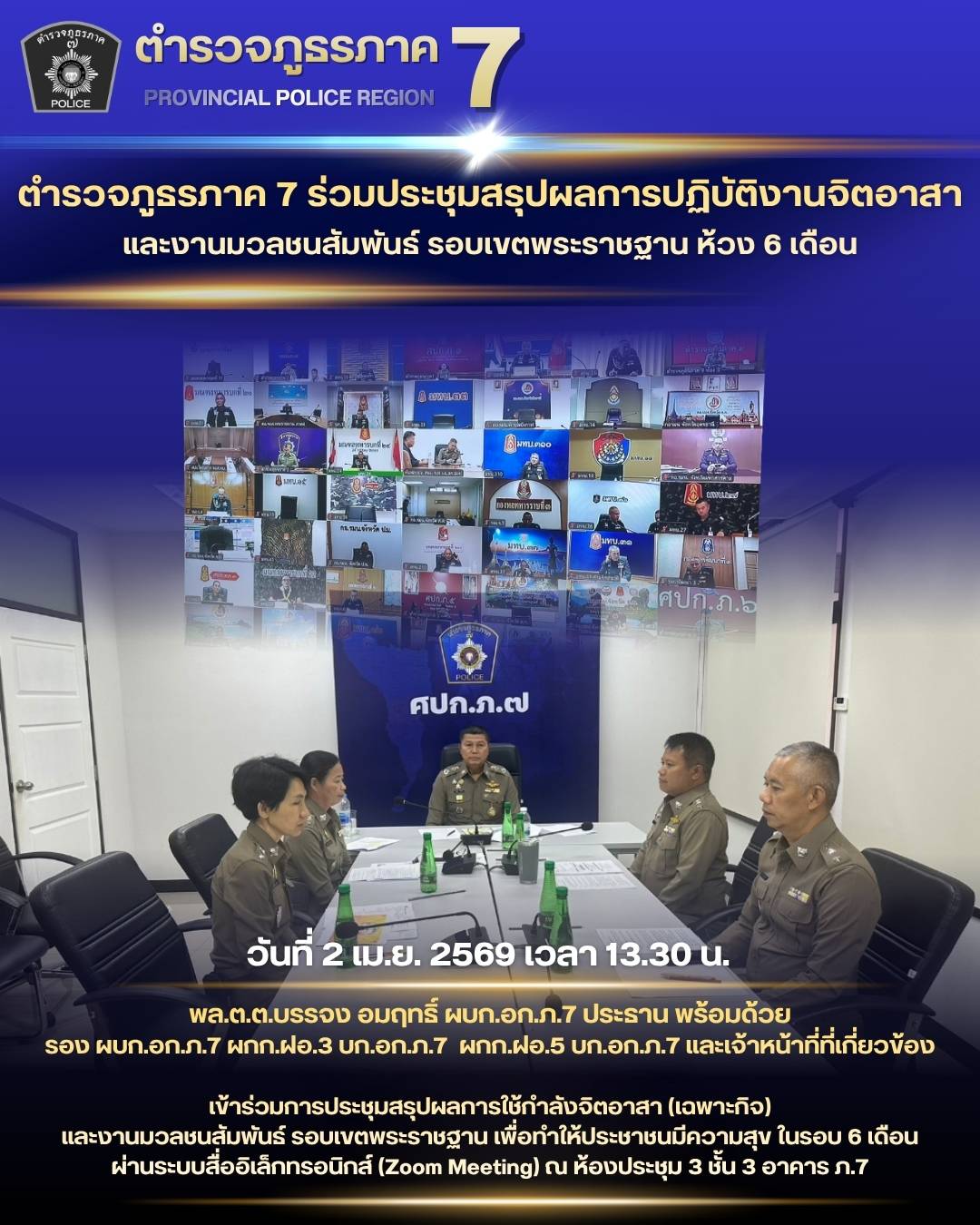 วันที่ 14 สิงหาคม 2568 เวลา 07.30 – 13.00 น. พล.ต.ท.นัยวัฒน์ ผะเดิมชิต ผบช.ภ.7 มอบห